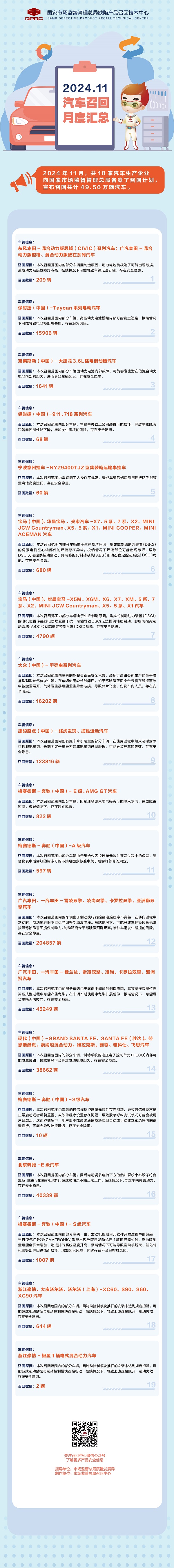 2024年11月汽車召回月度匯總