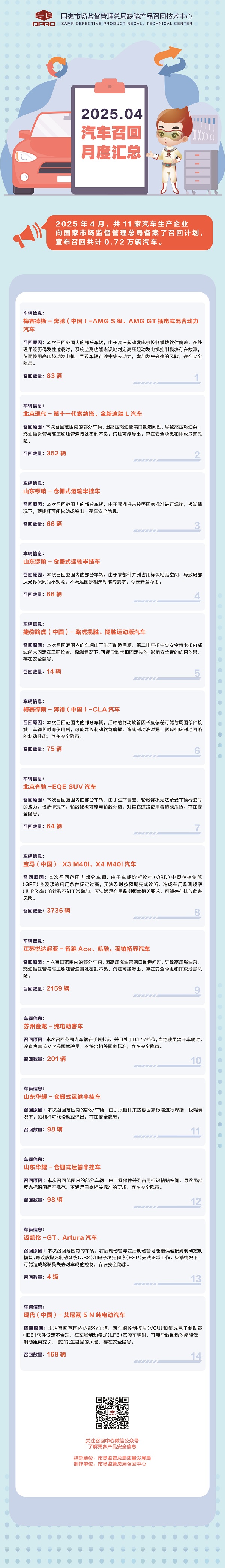 2025年4月汽車召回月度匯總