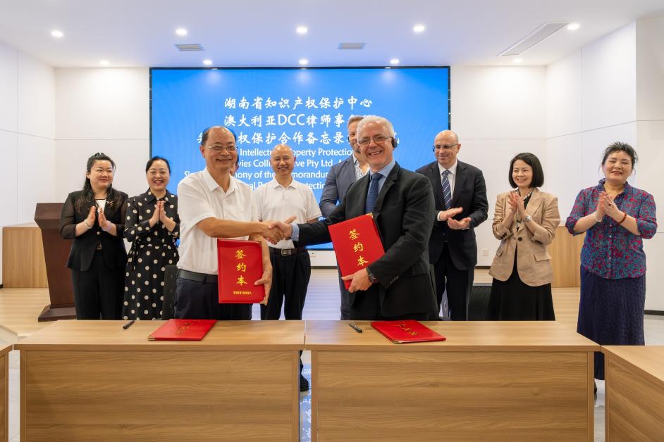 9月2日,湖南省知識產權保護中心、長沙知識產權保護中心分別與澳大利亞DCC律所簽署知識產權保護合作備忘錄,并聯(lián)合開展涉外知識產權保護交流分享活動。